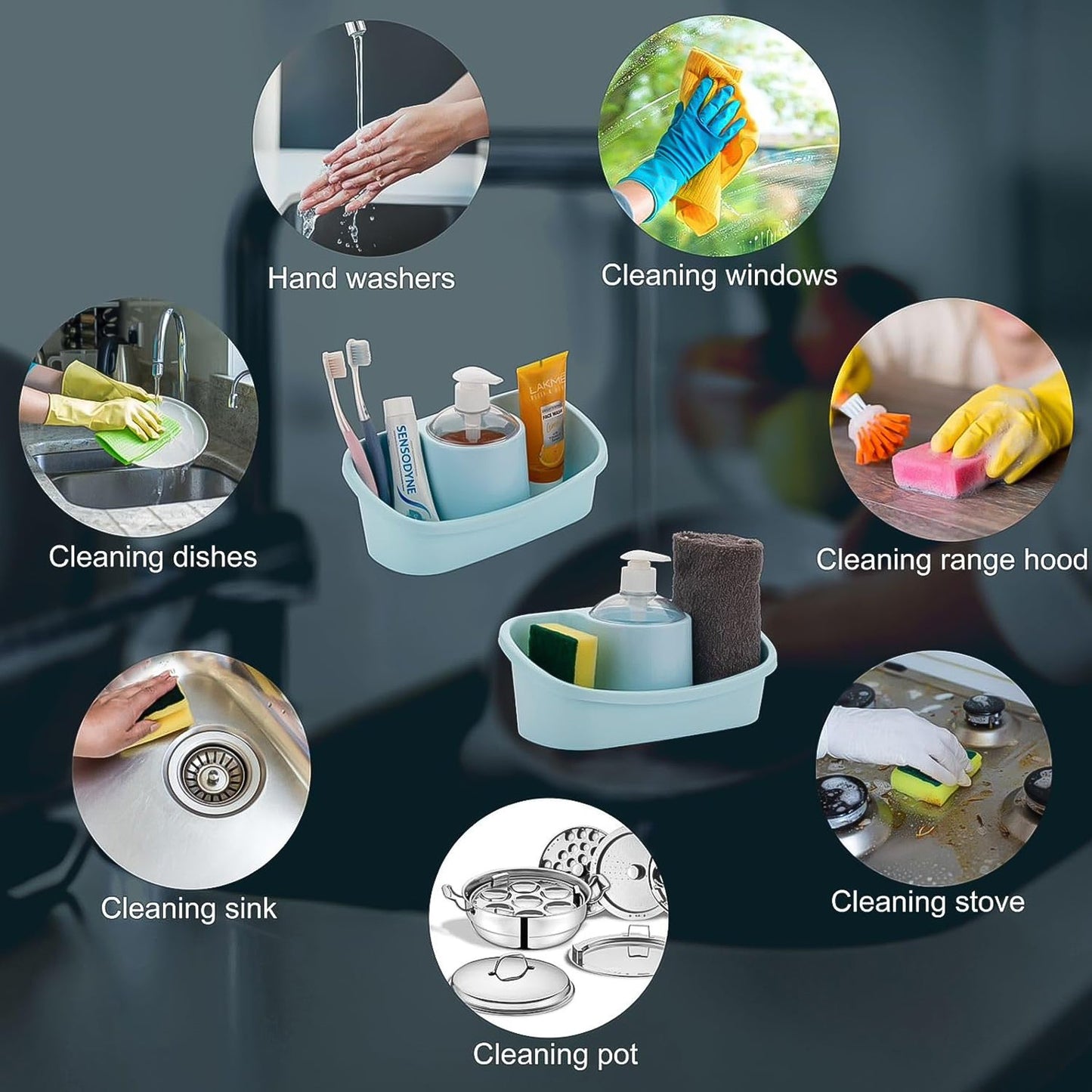 - Ideal for kitchen sinks to store liquid soap and sponges, etc.