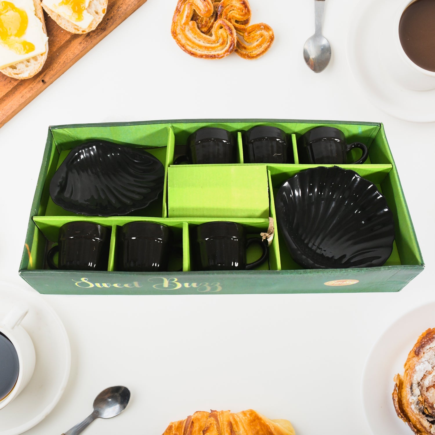 Sweet Buzz 8-Piece Seashell Ceramic Cup Set – Ideal for Home & Gifts