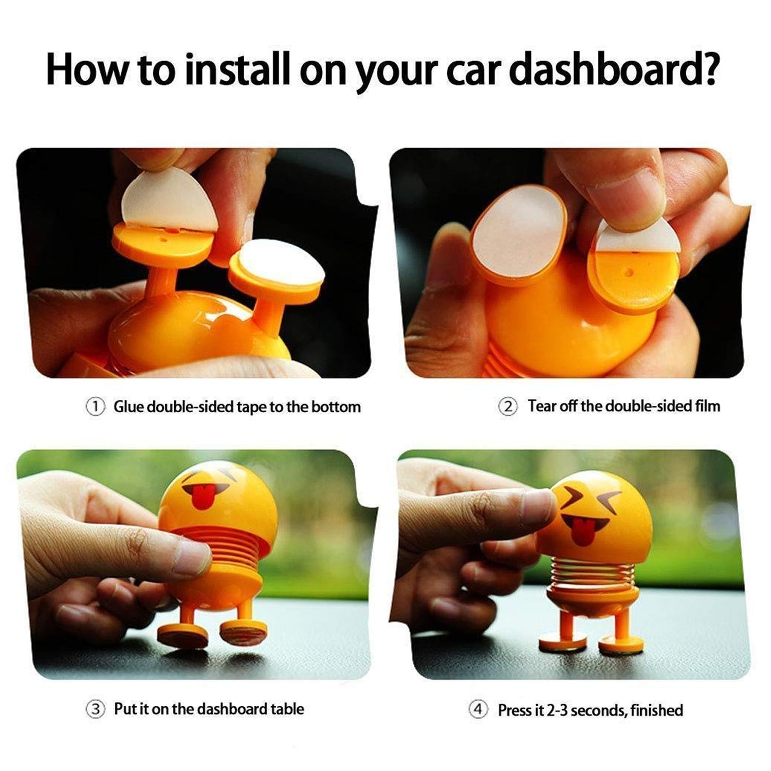 The emoji doll will shake their heads because of the spring when you drive your car or hit it on the head, without battery. It looks like he is nodding or shaking his head, so funny for us!